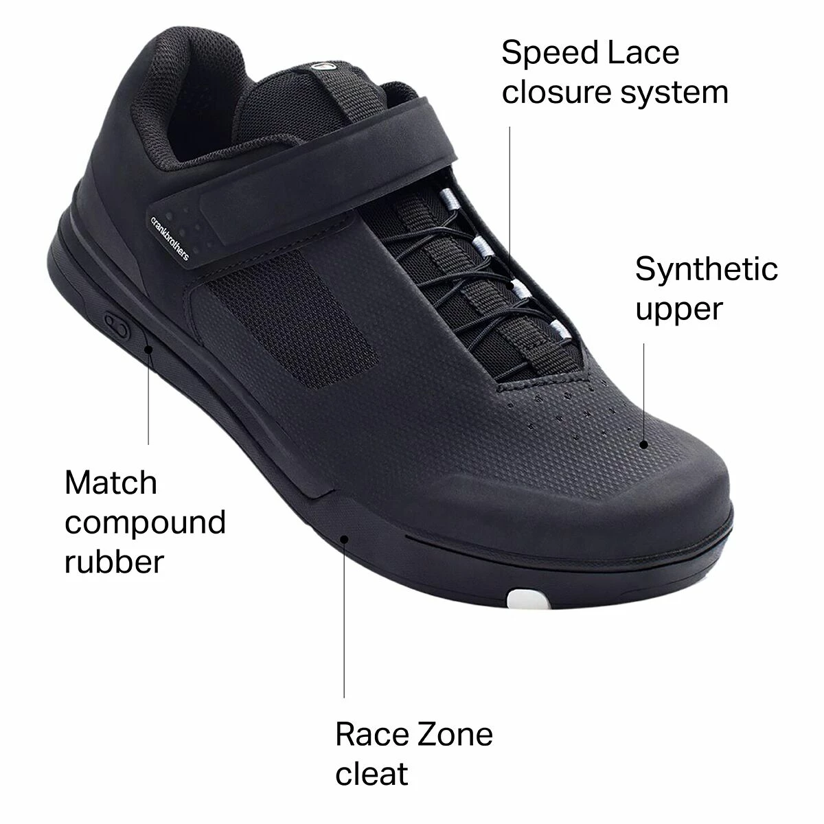 Blending rugged off-road performance with sleek, casual style, the Crank Brothers Mallet Speedlace Mountain Bike Shoe is ready to play in the mud before hitting the pavement for a post-ride brew with friends. These unassuming clip-in shoes pack all the necessary qualities for confidently hitting the turns and berms, yet remain comfortable at the trailhead when your ride ends and libations are in order. Features like the synthetic upper cushioned EVA midsole keep these kicks working hard for rides throughout the year, but the real winner is the match box design that’s built to pair perfectly with Crank Brothers clipless pedal collections. Such a match made in heaven allows the Mallet Speedlace to shed mud and simplify entry and exit as you transition from pedaling to pushing your bike uphill. We’re also stoked to find Crank Brothers’ mid-friction rubber compound along the sole of the shoe, providing additional traction for optimal pedaling efficiency and grip when you’re traversing roots and rocks.
