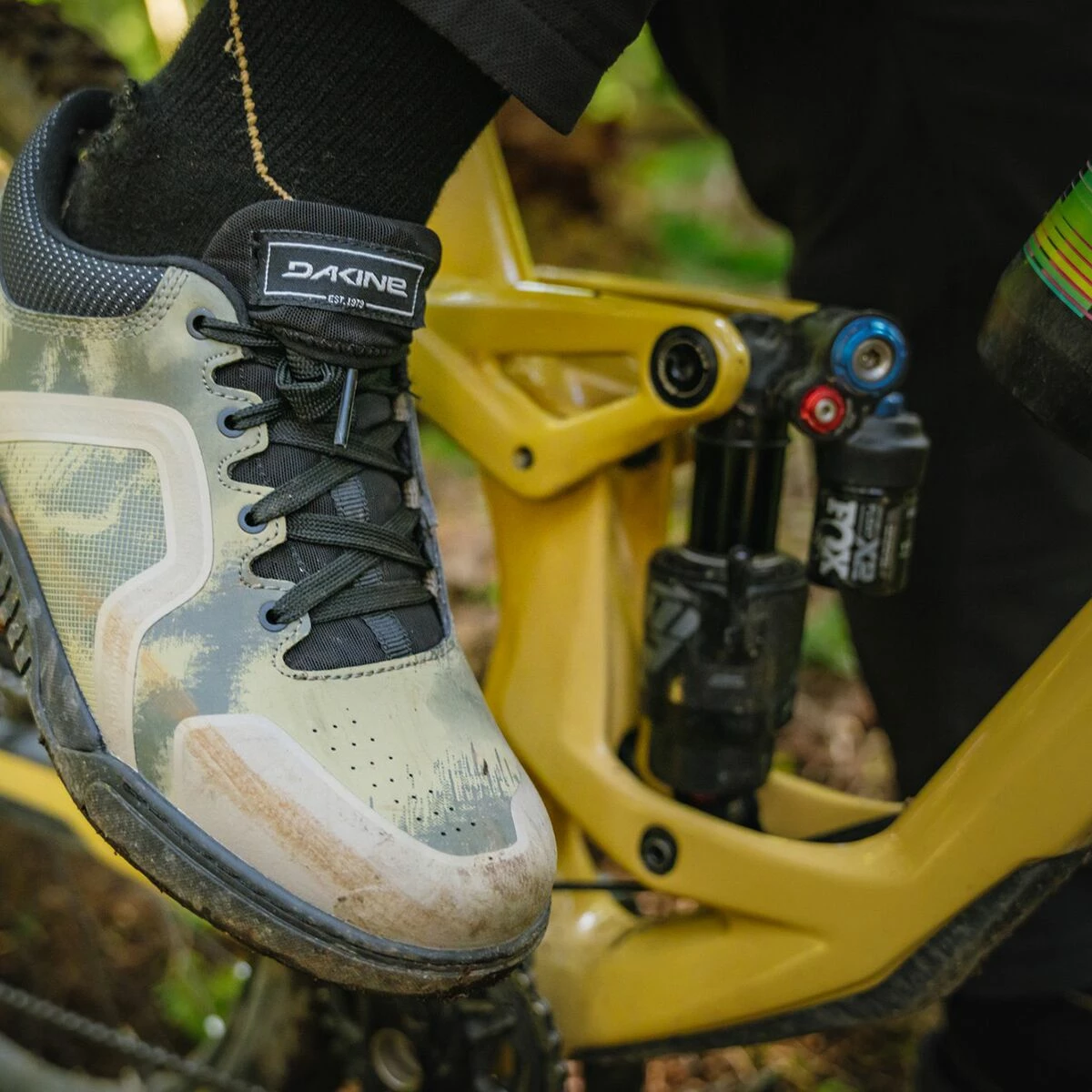 We like to maintain maximum grip when we’re mountain biking, and that comes down to the traction provided from our Dakine Drift Cycling Shoe. The brand’s proprietary DK FlexRide shank technology ensures secure support on the pedal while flexing in the toe. That, combined with a grippy outsole means we’ll have supreme energy transfer on the bike and mobility if we’re ever in a hike-a-bike situation.