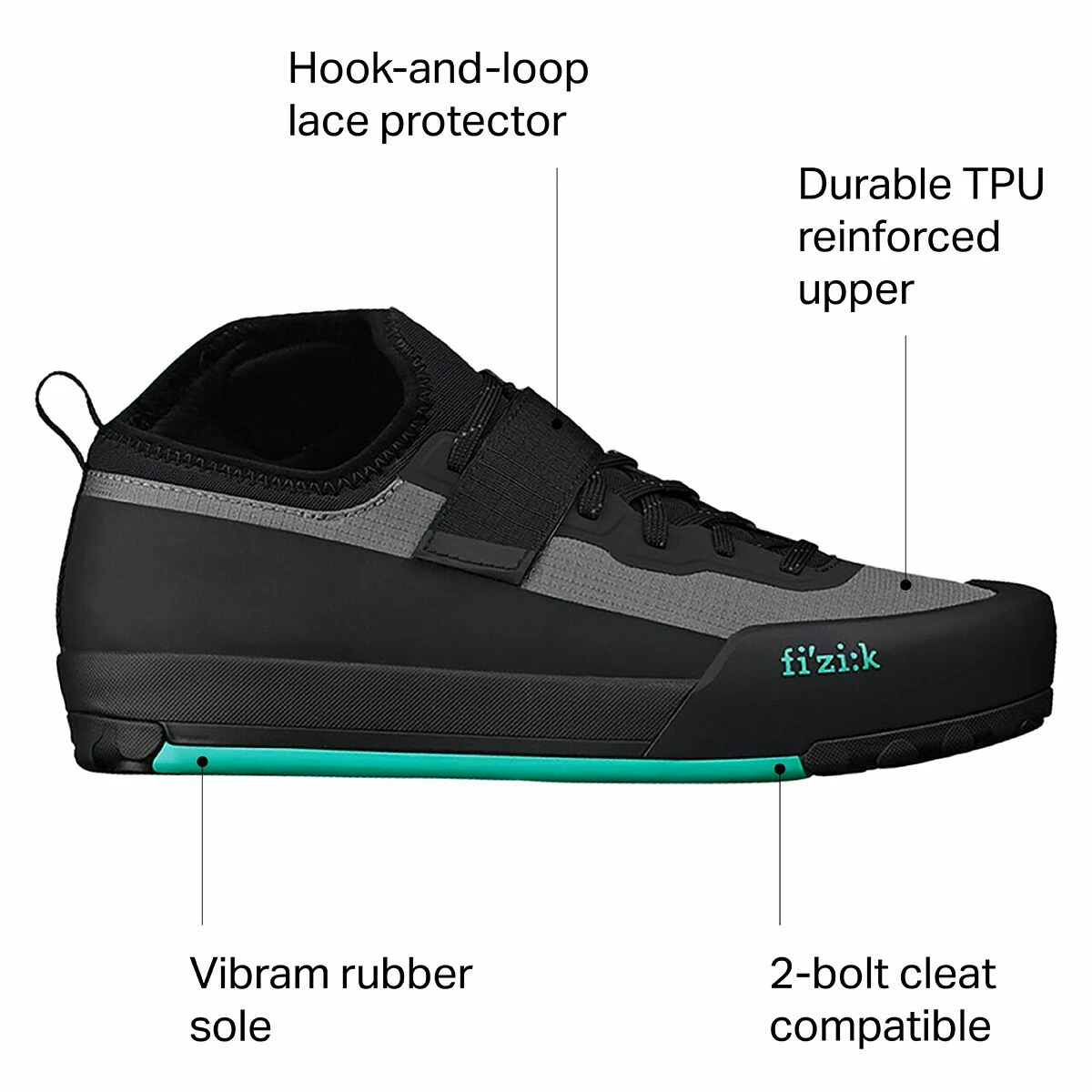 Both downhill and enduro racers require durable cycling shoes that are protective and offer control through the pedals, and that’s what the Gravita Tensor Cycling Shoe has to offer. It’s a lightweight and form-fitting gravity mountain bike shoe geared up for racing. Fi’zi:k calls it a unicorn because of its nimble, yet rugged, design that ticks off everything on our list for desirability. For us, it’s a uniquely customized shoe that offers the pedal interface, stability, and control we need for a good ride or race.