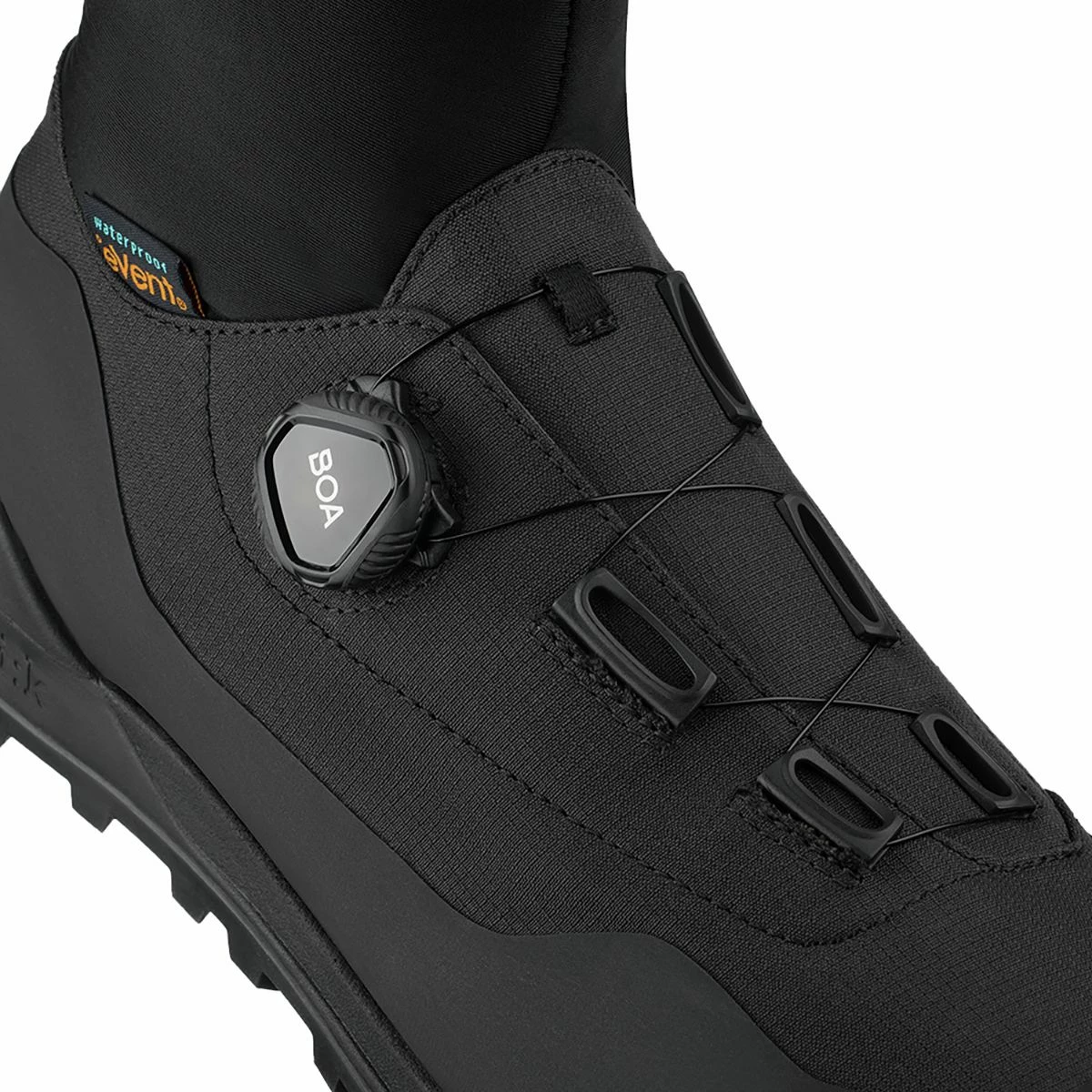 Keep your toes toasty as you cruise along frozen trails in these Fi’zi:k winter mountain bike shoes. The waterproof eVent membrane keeps the elements from penetrating from the outside, but at the same time uses Direct Venting technology to remain breathable from the inside so you feet don’t overheat or get clammy. Plus, the Artica X2’s maintain a lower profile than bulky winter riding boots despite having a cozy fleece liner.