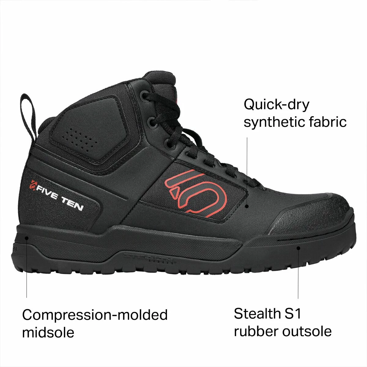 - Same sticky FiveTen rubber with added toe protection