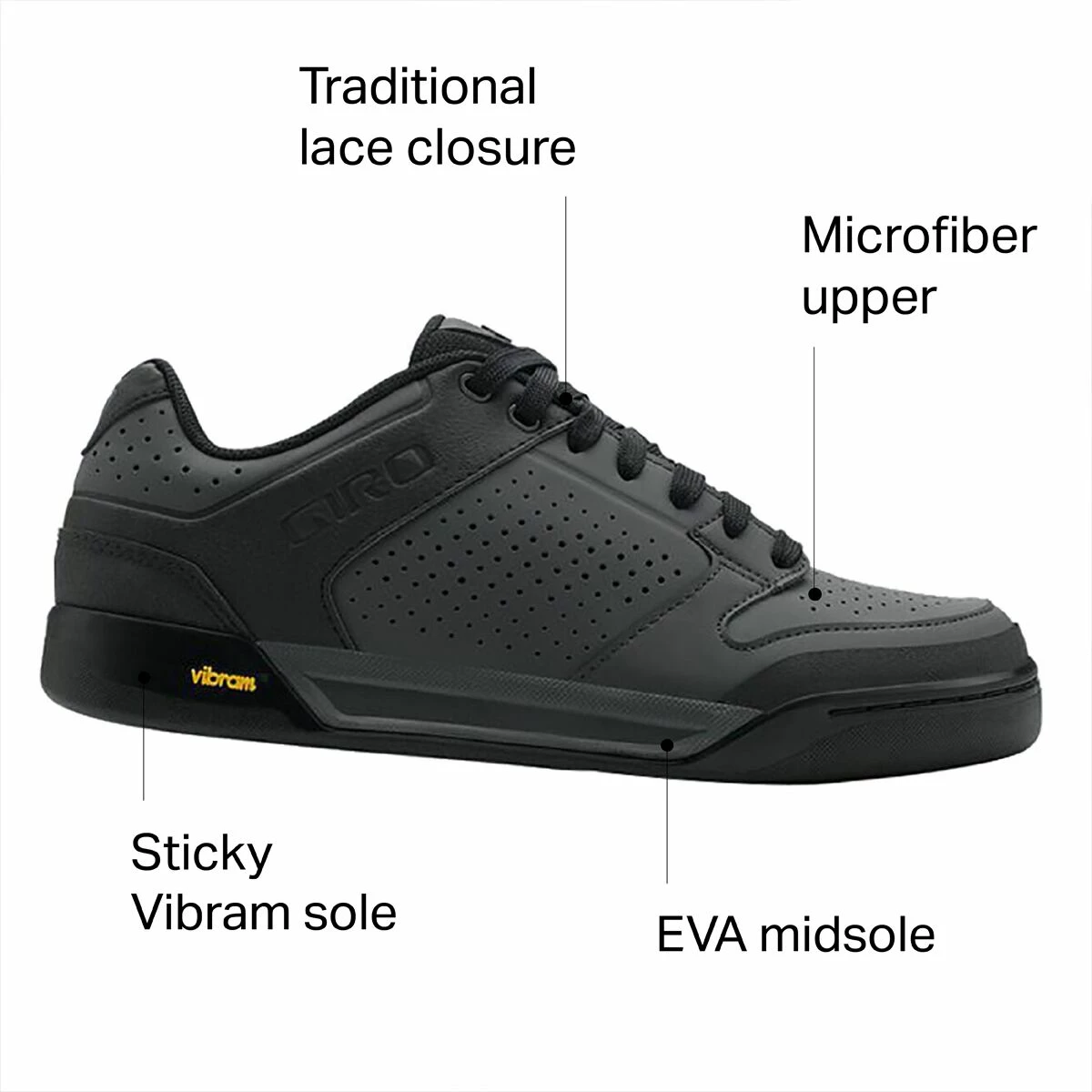 Many slopestyle, DH, Enduro, and trail riders prefer rocking flat pedals for those occasions when going flat out requires foot out and the ability to separate yourself quickly from the bike for a trick or an unfortunate crash is necessary. Giro’s new flat pedal offering, the Men’s Riddance Cycling Shoe is designed for such disciplines where pedaling efficiency is still valued and slipping a foot off the pedal isn’t fast, it’s scary, and cushioning and protection are important criteria as well.