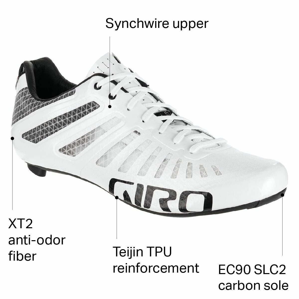 At just 185 grams, the recently updated Empire SLX Cycling Shoe from Giro is breathing some pretty rarefied air. Not many shoes on the market come within 100 grams of the iconic Empire, but it’s not giving up anything in terms of performance, either. The new uppers are constructed from Synchwire, the same lightweight, low stretch, and quick drying material used on the range-topping Imperial. In fact, the new Empire uses the same upper and outsole as the Imperial, however, it trades out the BOA dials for laces, saving some 60 grams in the process and offering an even more personalized fit and the option of some color customization.