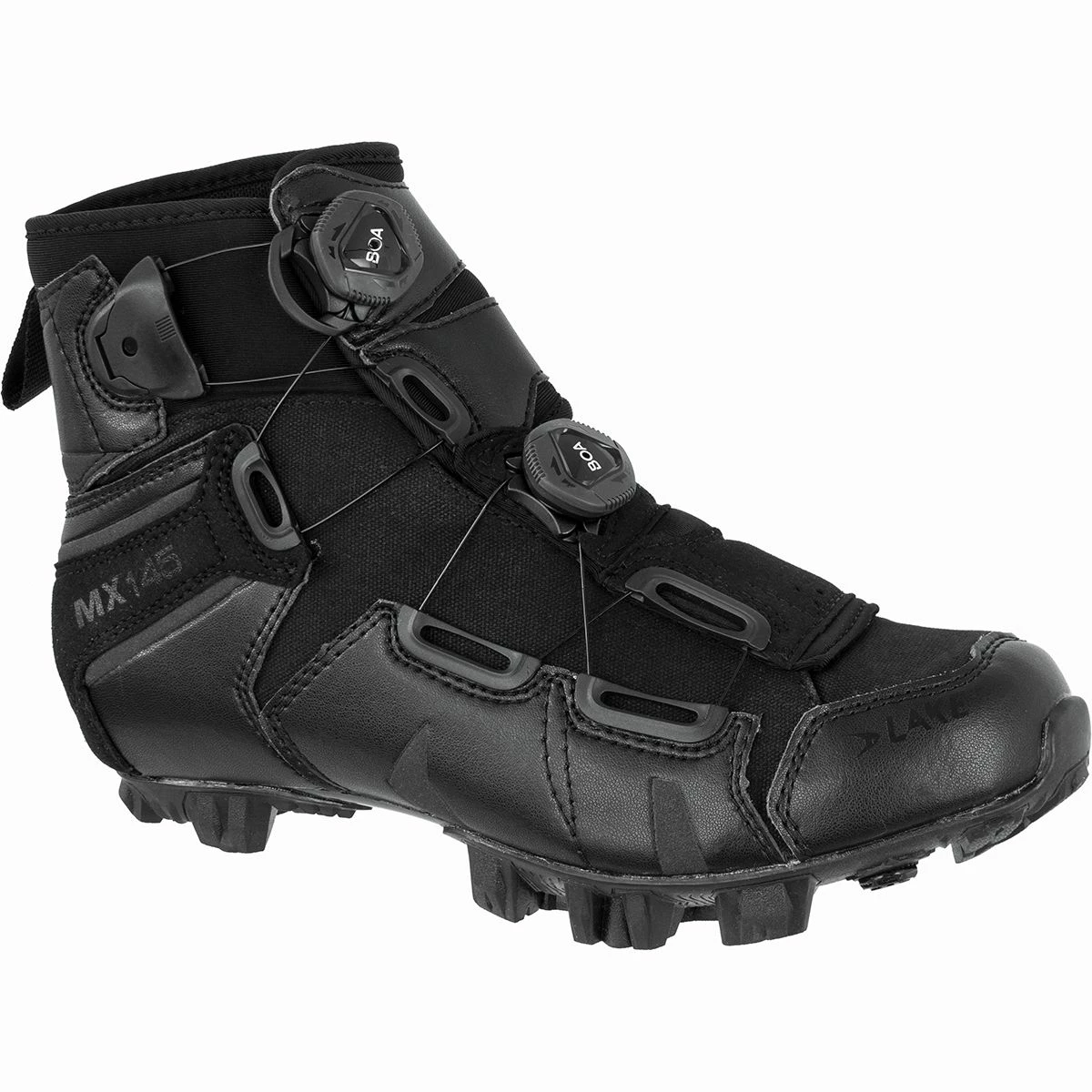 The MX145 starts with the MX Sport Last featuring a larger, roomier toe-box than its Comfort last, providing increased foot control through the heel and forefoot. Its resulting fit is designed for aggressive riding while retaining all-day comfort. Ideal for commuting, bikepacking, and mountain bikes who are in cycling shoes for long periods of time. Combined with the Hypergrip Enduro Sole with Ice Lock anti-slip lug inserts, the shoes have the stiffness to put power to the pedals and offer loads of traction off the bike as well. The uppers are a highly water-resistant waxed canvas and leather, and Lake employs a waterproof membrane to seal out the elements.