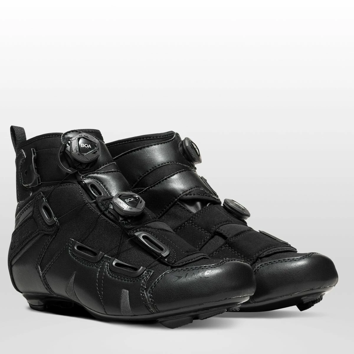 If you are a fan of winter cycling and also have wide feet, the Lake CX145-X Cycling Shoe is worth a gander as it takes the performance characteristics of the regular-width version and opens up space to accommodate wider feet. With an upper constructed from waxed canvas, Clarino microfiber leather, and a waterproof membrane, you have a shoe that will protect your feet from winter’s elements and make riding outside a whole lot more enjoyable. Add to that a taller ankle for more coverage and dual side-mounted BOA IP1 dials for easy entry, exit, and adjustments on the fly, and you get a shoe that might have you looking forward to riding during those character-building weather conditions.