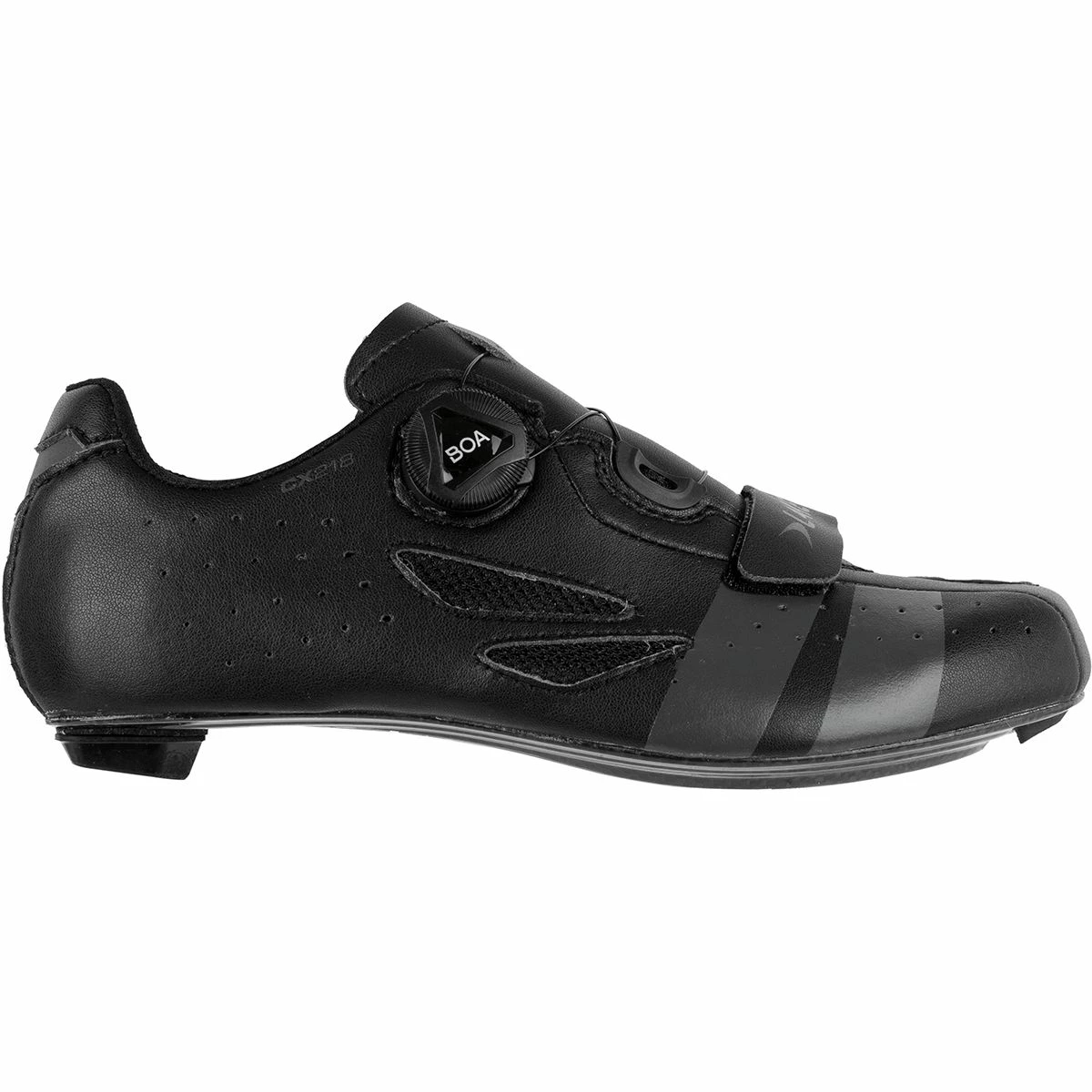 Lake builds its CX218 Cycling Shoe for high-cadence pedaling and fast riding. It uses high-quality materials throughout for race-level performance in a shoe that cost a lot less then you might imagine. This updated version changes from the Action Leather upper of the previous model and exchanges it for lighter, softer, and longer wearing Clarino Microfiber while its strategically placed mesh inserts and perforations throughout keeps air flowing through to keep your feet cooler. Anchoring them to your feet is a single side mounted BOA L6 lacing system and a hook-and-loop strap that customizes your fit and eliminates the potential of pressure points and hot spots for comfort on those all day rides. The CX/TT Competition Last increases toe pitch and heel lift to allow your foot to expand under high pedaling pressures, while the 100% carbon fiber Lake Race outsole keeps weight low and stiffness and strength high.