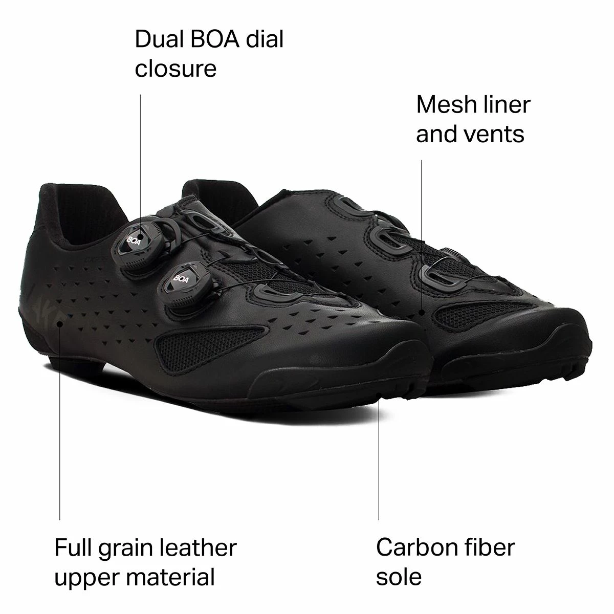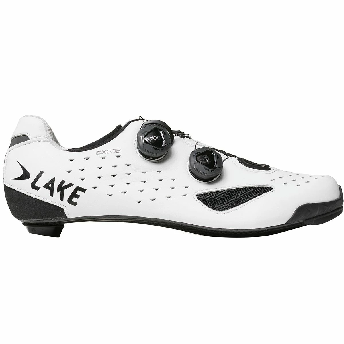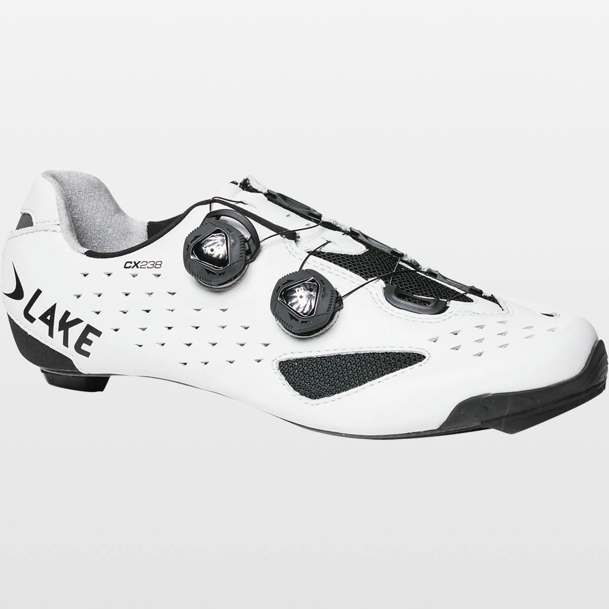 Lake evolves the CX237 to the new CX238 with updates to improve the longevity and performance of this long-time favorite road racing shoe. The Competition last is shaped for better fit and comfort during hard efforts, with a slimmer heel and wider forefoot to allow for foot expansion under pressure. Supporting it all is Lake’s Race carbon fiber sole, providing the stiffness we need for better power transfer and durability. A panel at the heel and a rubber bumper at the toe protect from prematurely wearing out the full-grain leather upper, which has mesh panels and venting to improve cooling.