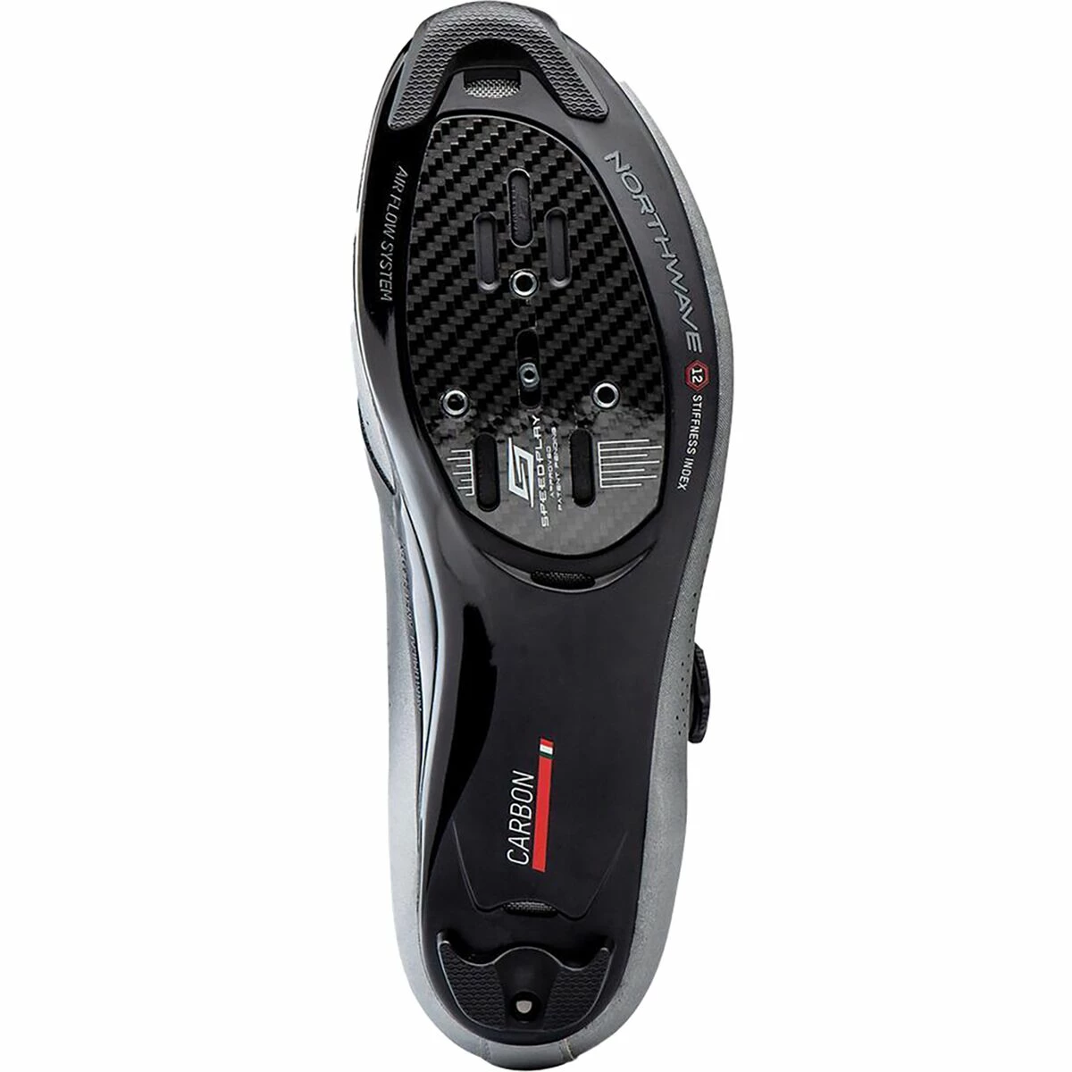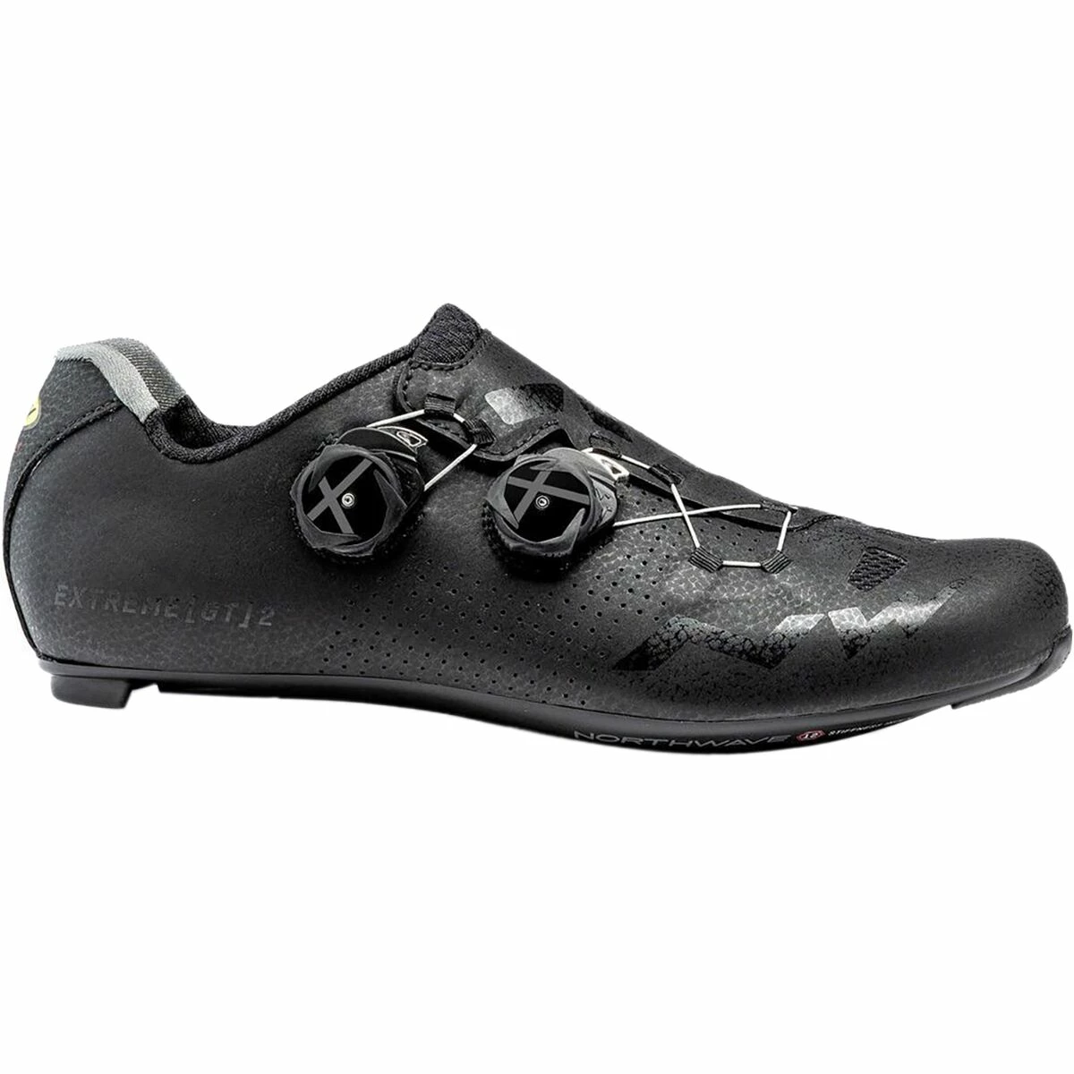 One tier removed from their top of the line Extreme Pro is Northwave’s Extreme GT 2 road cycling shoe. Using Morph Carbon 12 AAS in the sole of the GT 2, Northwave achieves a stiffness index of 12 and an efficient power transfer from your foot to the pedal. Stiffness doesn’t mean lack of comfort, however, as the Anatomical Arch Support system comforts to any foot shape, providing hours of pedaling comfort in a race-ready platform.