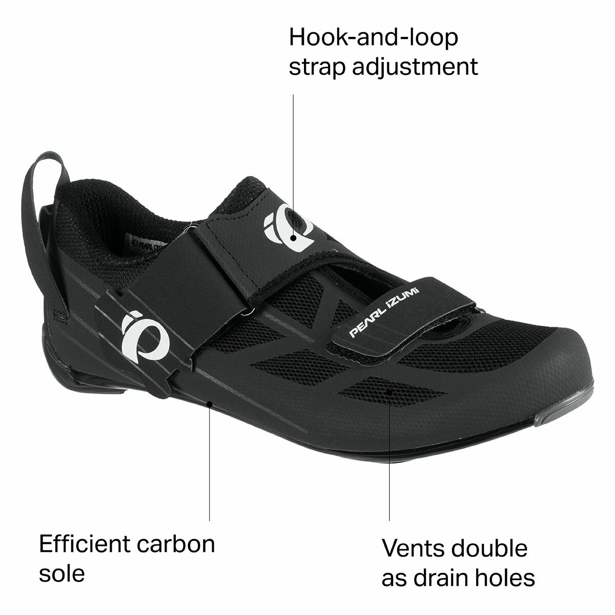 Inspired by its pricier siblings further up Pearl’s tri shoe ladder, the Tri Fly Select V6’s accessible price point is kinder to newer triathletes who have a long, expensive list of gear to gather up before they see an age group podium. Though it isn’t pro-level, the shoe still comes with a carbon-reinforced nylon sole, seamless, quick-drying uppers, and a comfortable two-strap wrap closure that pulls those pliable uppers close around your foot. Pearl specifically positioned the straps away from pressure points that could impede circulation so that numbness and hot spots don’t interrupt your bike leg or your triumphant, slightly wobbly jog into T2.