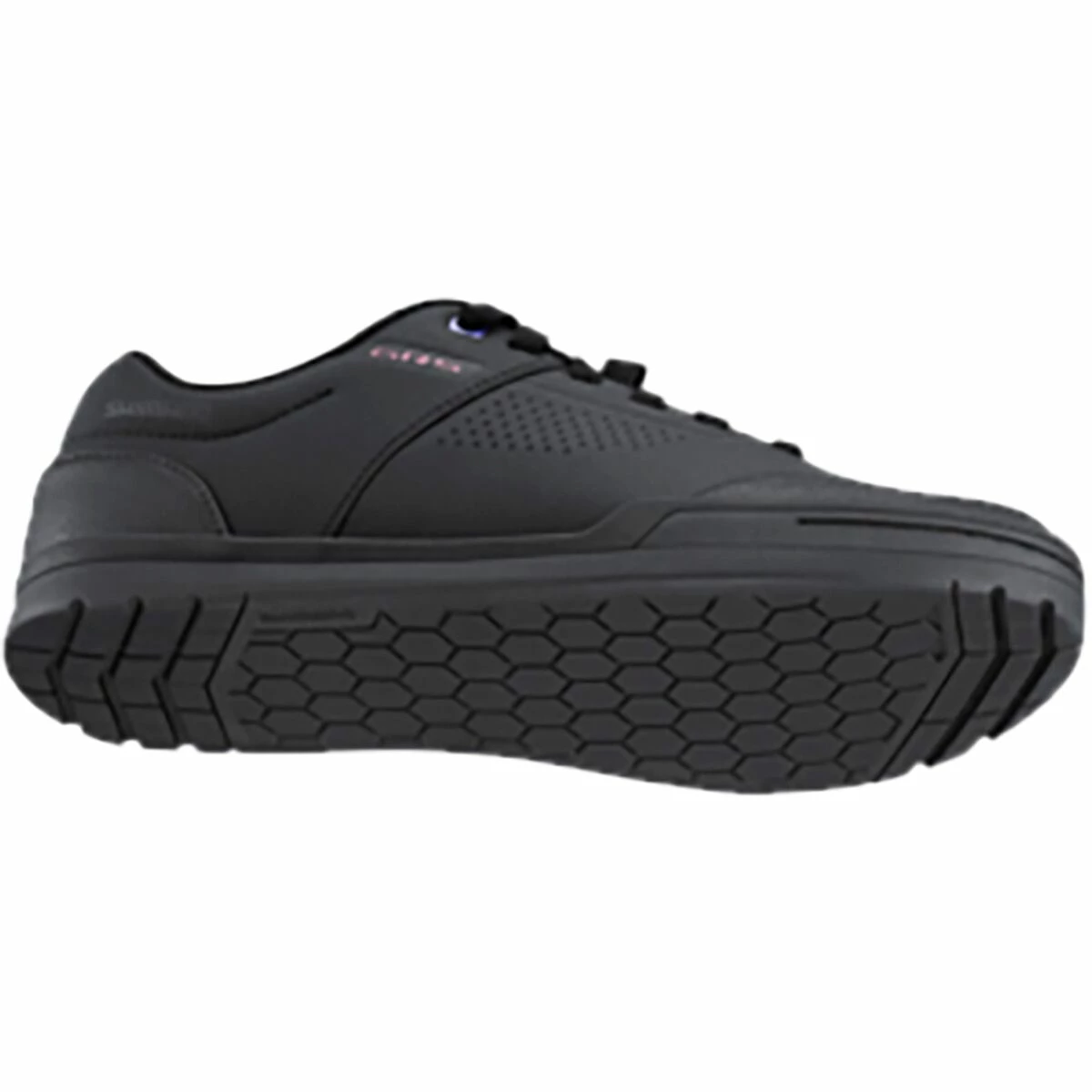 - Shimano’s rubber sole grips on flat pedals and walks with ease