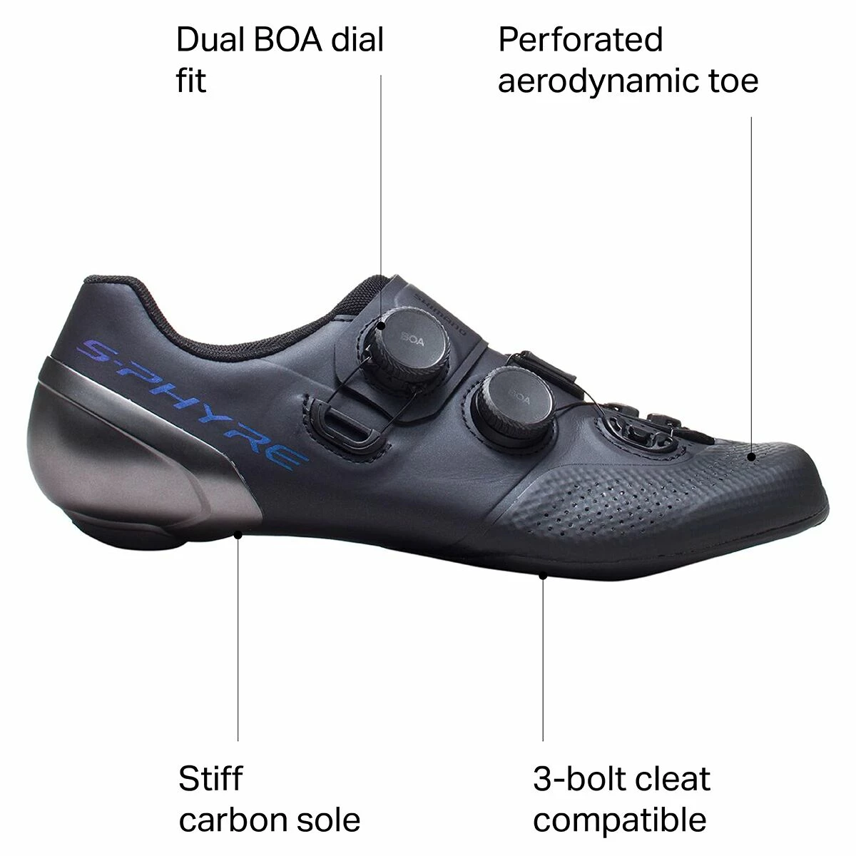 Shimano’s SH-RC9 S-PHYRE Cycling Shoe is becoming well known for its glistening blue presence at the front of the pack and is quickly becoming what may very well be a legacy-shoe that holds its dedicated space in cycling lore. Stepping into the RC9 is a unique experience, as comfort is immediate, and you can vividly imagine pro-level accelerations on your race-rides. Shimano uses a 360-degree fit optimization that unifies all the individual components on the shoe to become one complete system, engineered to provide stability and maximum power transfer on the pedals.