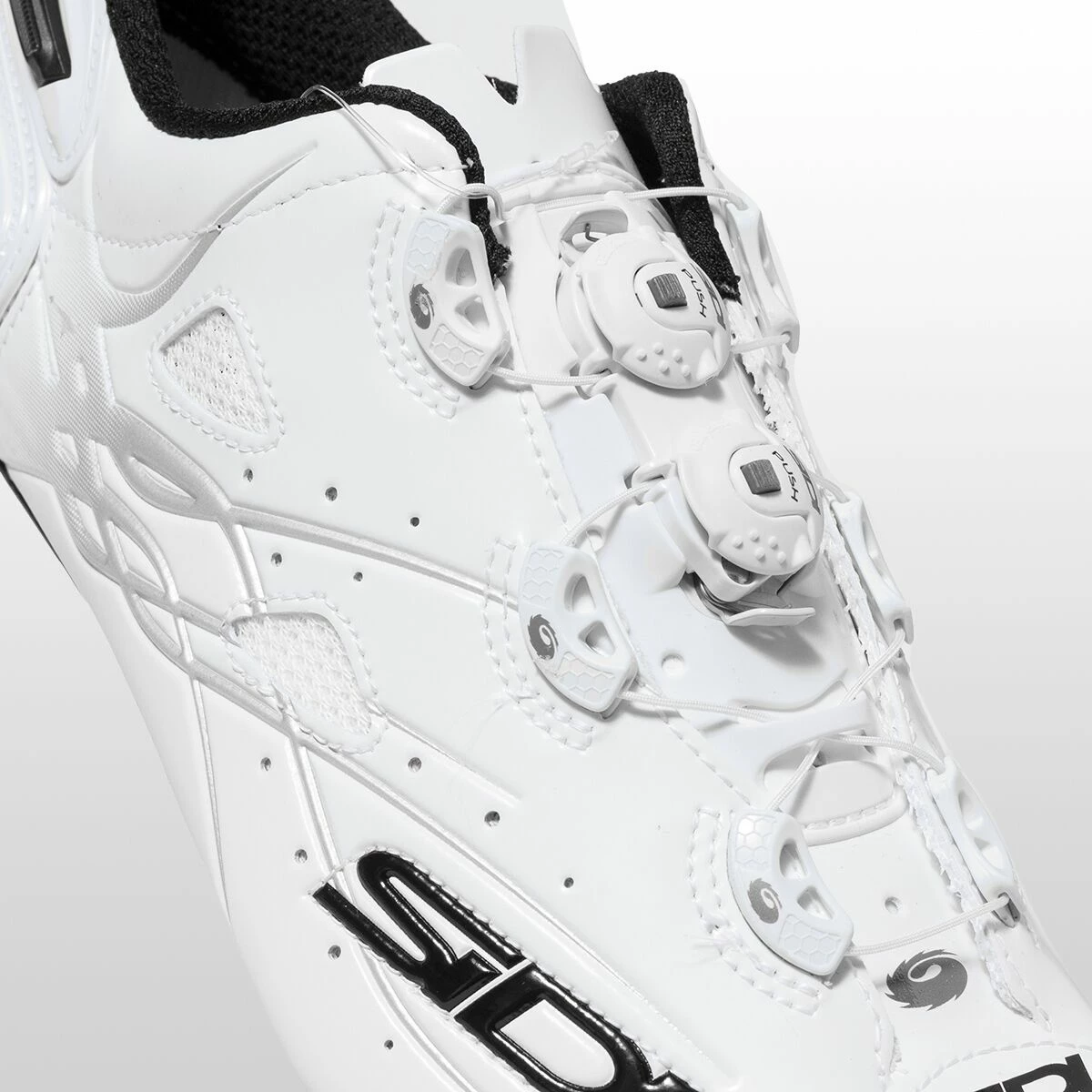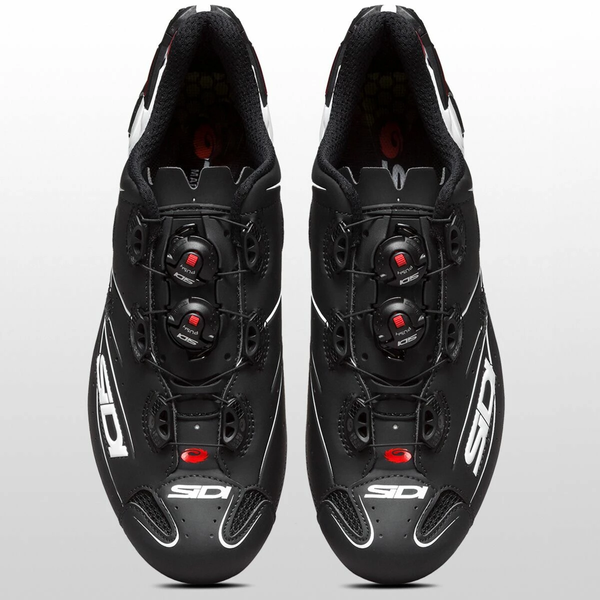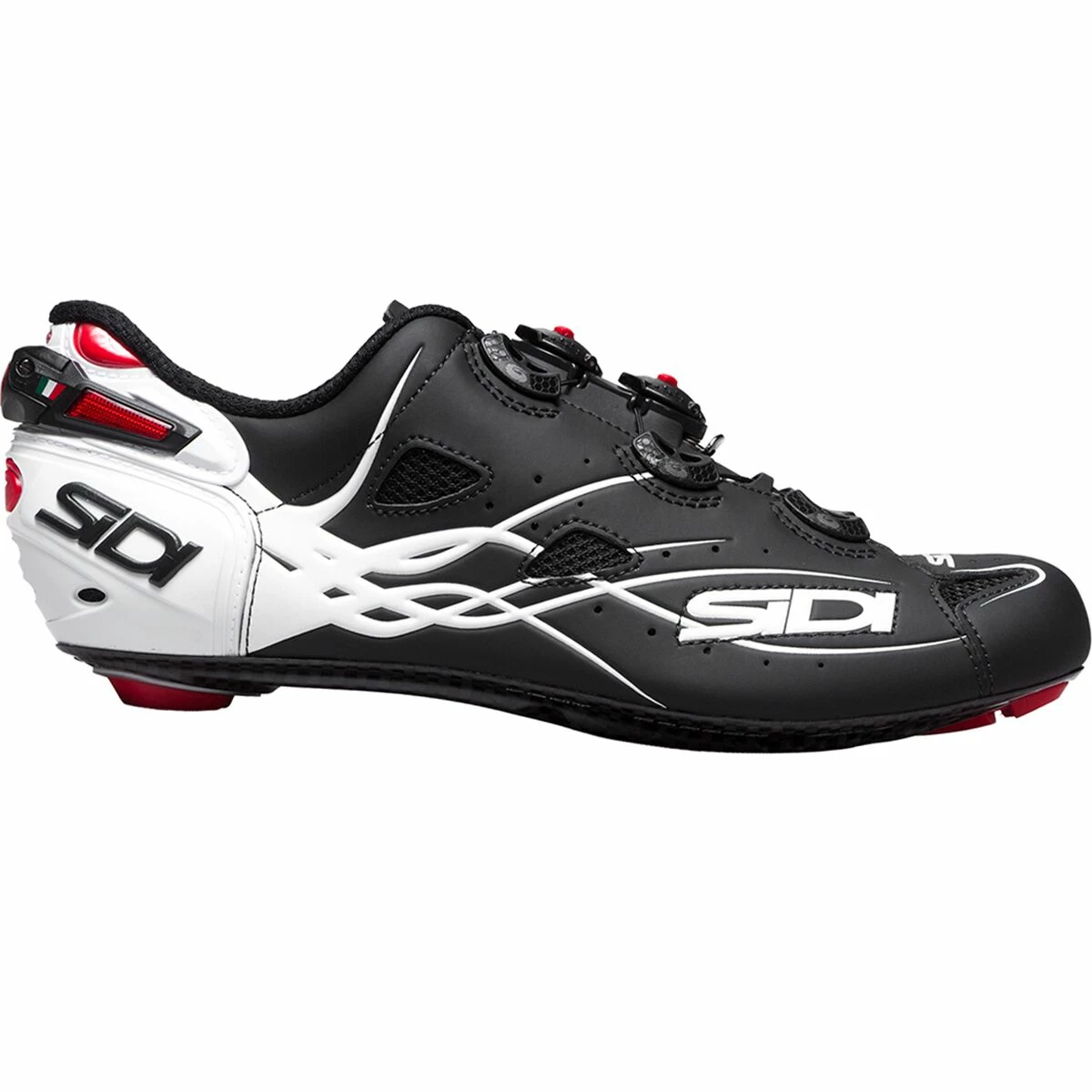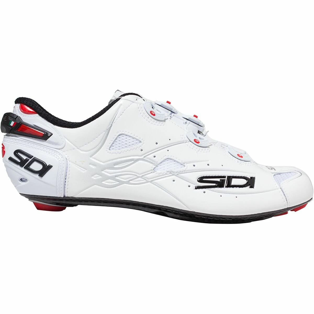 The Shot stands alone as the only shoe in Sidi’s line to embrace the symmetrical closure system of central dials rather than dials offset on the outside of the foot. The effect pulls the upper from both sides, enveloping the foot in a cocoon of Microfibra Techpro rather than pulling the material over the top from the instep. The closure system also makes the Shot Sidi’s cleanest shoe, both aesthetically and when it comes to aerodynamics. Fewer bulky protrusions make for a more minimalist silhouette than what we’re used to from Sidi, and less protrusion also means fewer transitional ridges to catch the air and slow you down.