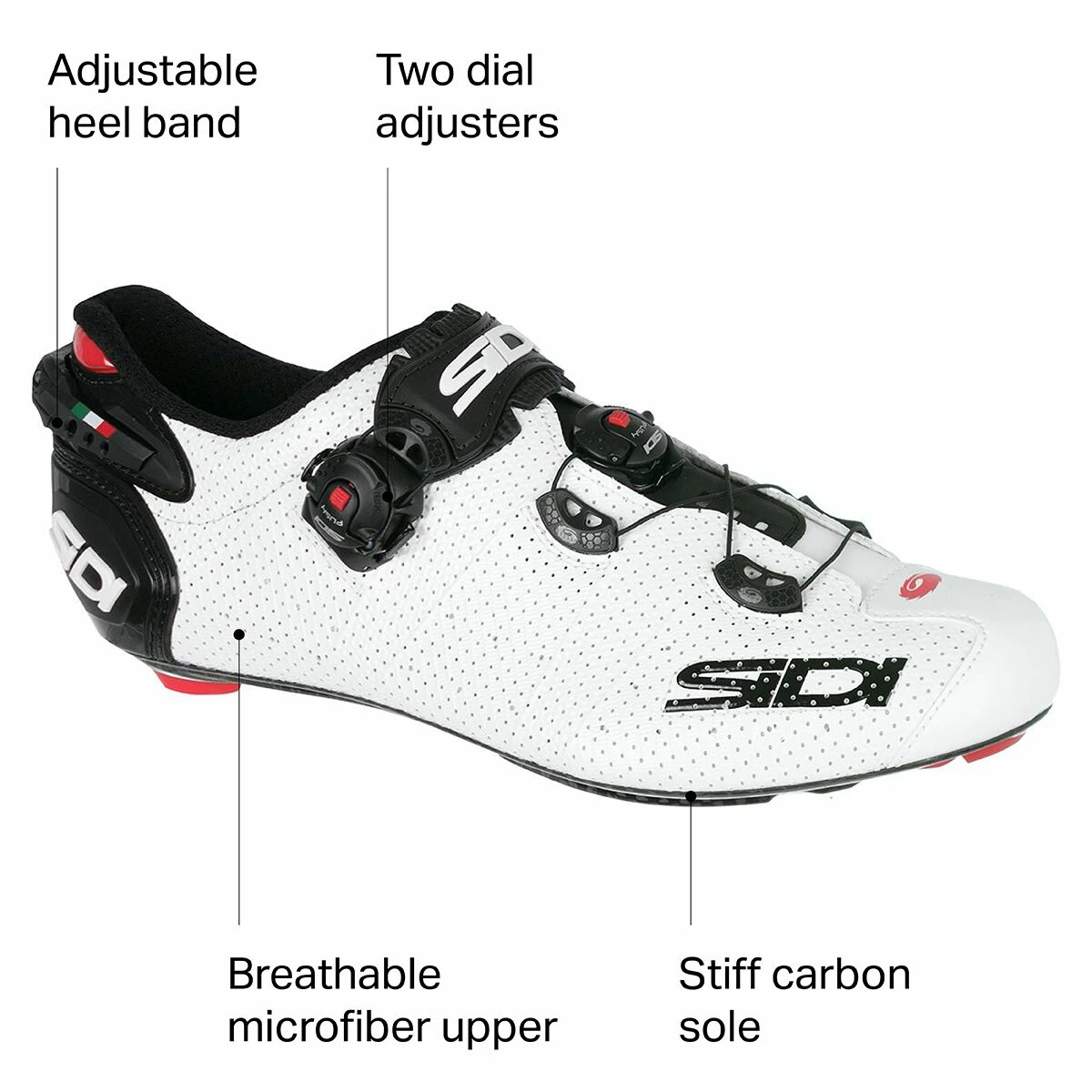Sidi’s Wire 2 Air Vent Carbon Cycling Shoe is essentially the same as the Wire 2, but comes with a heavily perforated upper for extra ventilation when the temperature rises. It also sees the same updates as the Wire 2, improving fit and comfort over the previous generation while bridging the gap to their top-tier shoe the Shot. Like the Shot, the Wire 2 Air Carbon has the lower dial relocated to the top of the tongue for a more comfortable fit with equal tension across the whole foot. The instep strap has been made a bit narrower too, with more flexibility and the addition of padded edges to further improve comfort. One thing that hasn’t changed is Sidi’s unrivaled craftsmanship, ensuring these latest Wire 2 Air shoes continue the legacy of this esteemed Italian shoe brand that’s graced the feet of multiple Grand Tour winners.