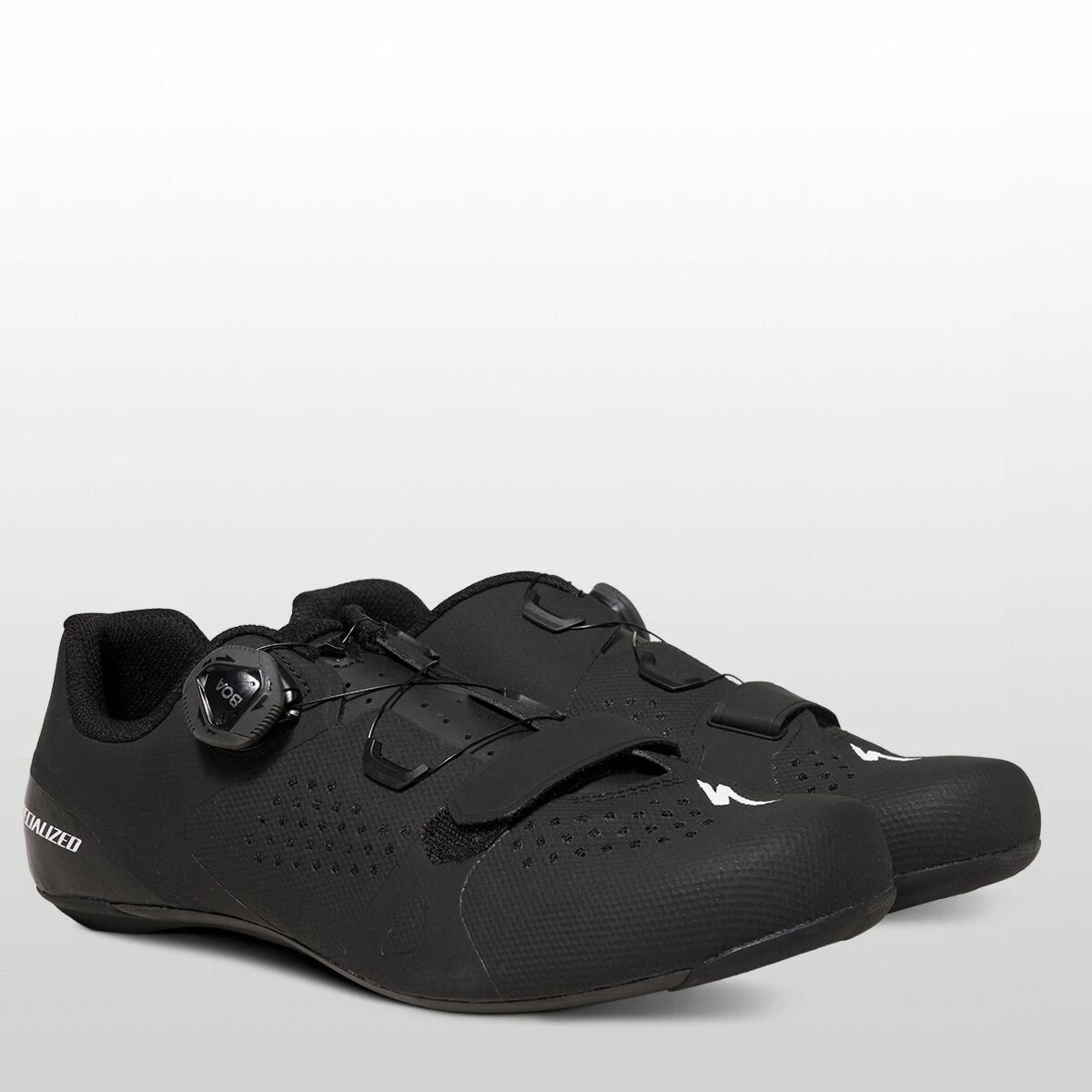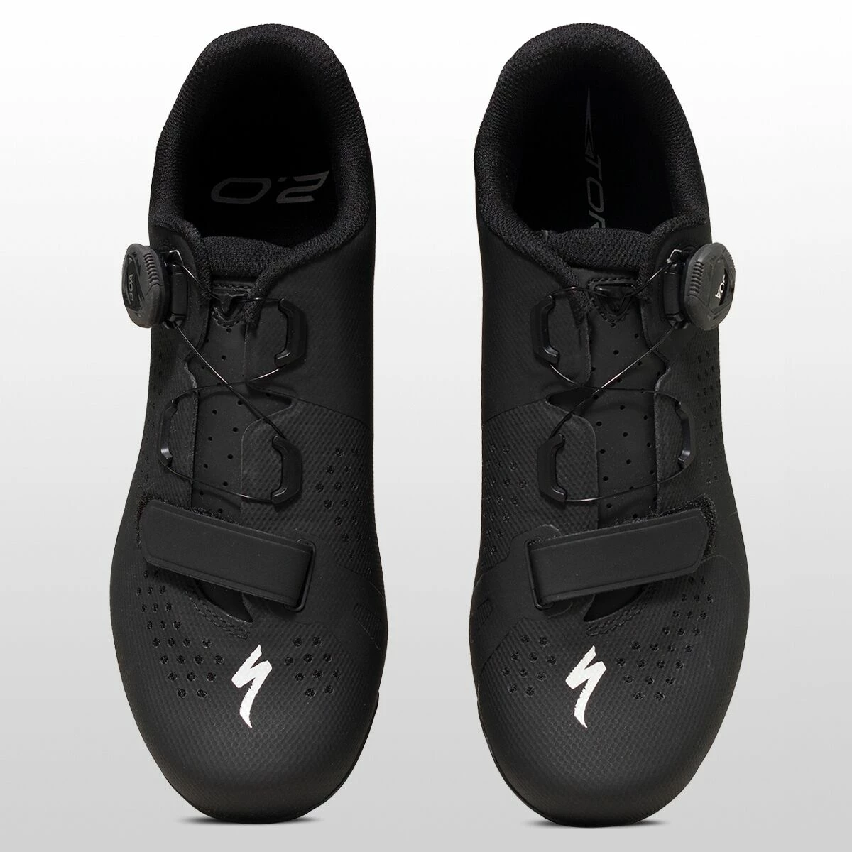 Stiffer than the Torch 1.0, the Specialized Torch 2.0 Road Shoe is the next step in cycling performance for intermediate-level riding. Its carbon sole is stiffer than the Torch 1.0’s composite sole, and its stiffer performance puts more power down to the pedal without adding weight on the upswing. It features a scientifically-tested Body Geometry design that provides proper hip-to-foot alignment for a boost in power, increased efficiency, and reduced chance of injury. The breathable mesh upper fastens quickly with a Boa dial and two hook-and-loop tabs, and there’s more room in the toebox for a less-constrictive, sock-like feel.